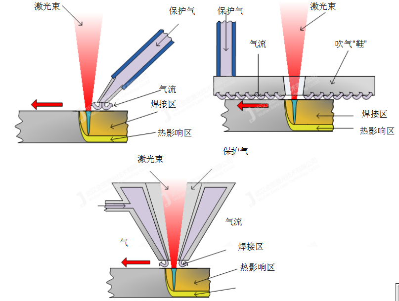 保護氣能起到防止材料燃燒氧化,抑制飛濺,降低/提高某些材料活性,間接冷卻材料等作用。保護氣的使用對焊接的質量會起到十分關鍵的作用。在開放環境中,我們一般會采取吹氣方式。根據實際環境,我們建議客戶采用合適的吹氣方式。